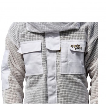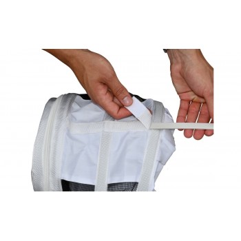 Système de maillage triple couche avec une couche de filet, une couche maillage mousse et une dernière également en filet. Ce système assure une grande ventilation mais également une sécurité maximum car l'épaisseur des 3 couches évite aux dards de passer.